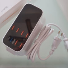 Pantalla LCD visual: equipada con una pantalla digital LCD, muestra de forma inteligente el estado actual y de carga de cada puerto de carga en la pantalla. El diseño liviano y compacto es ideal para uso en el hogar, la oficina y el escritorio. Amplio rango de voltaje de entrada de AC100-240V que se adapta perfectamente a los viajes internacionales.