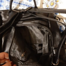 Bag made of soft quality artificial leather. Zippers work well, from the side to the compartment will fit a large wallet. In the main compartment folder with A4 sheets will fit with difficulty. lining of dense material.