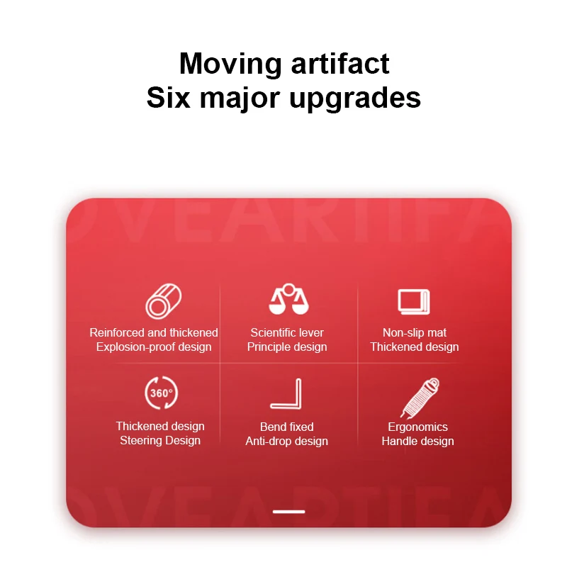 Aspecto elegante, mano de obra fina, dimensiones precisas. Tamaño pequeño, fácil de transportar y almacenar, ahorrando espacio. Adecuado para pisos de madera dura, laminados y alfombras. Juego de transporte de muebles que ahorra trabajo sin rayar el suelo.