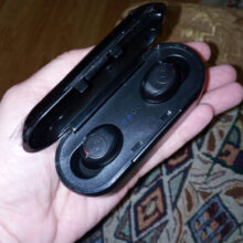 In the kit to the headphones was a case, a wire with micro USB, replaceable nozzles, and instructions (in English) Good sound quality for your money. The case was a little more than I thought, but it can be used as a stand for the phone. In general, the purchase is satisfied
