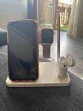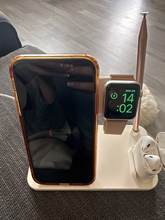Producto bien al tacto, ha llegado muy rápido lo ordene el día 9/12 de momento funciona muy bien, lo que si me disgusta un poco es que el iman para la carga del Apple Watch no lo mantiene fijo pero si lo carga completamenta. Tienes que colocar un cubo de 22w mínimo hacia arriba para que todos los dispositivos carguen de buena manera y rápido , ahora uso uno de 27w y va muy bien