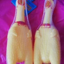 Hecho 100 % de caucho no tóxico, nuestro pollo mide 11 pulgadas (31 cm) de largo, nuestro ruidoso y quisquilloso juguete puede ir contigo de fiestas a conciertos y mucho más para pasar un buen rato gritando.