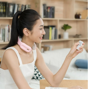 I am suffering from neck pain badly. I feel much better every time after I use the massager for 15 minutes. It’s wireless and has a separate remote. It’s very moveable and portable. The two connectors are full of elasticity. They are able to move down and extend out a little bit, so it fits my neck perfectly. It’s really really comfortable and soft. It can warm up right around my neck area. The warming sensation is really nice. It delivers pretty decent pulsations. The battery life is really amazing. I recharge it about every 3 weeks. It is doing really great. It would be better if the remote has a screen and can show the current level and mode.