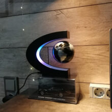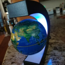 The higher part of the base contains a powerful electromagnet and a microprocessor allowing the globe to levitate and rotate in both directions.