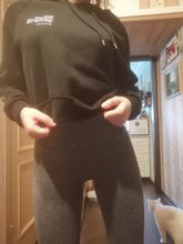 хорошие леггинсы, не просвечивают, ткань плотная. на мой жирок на животе после родов 100см, L подошёл идеально. пришли за две недели до Калининградской области