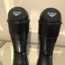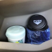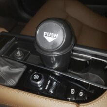 Fits well in the car door slot. Perfect for fast food receipts parking garage tickets and other small trash. Forces you to empty it out because once full you can no longer push the lid.