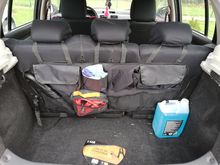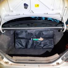 Todos los engranajes de seguridad y cosas de mantenimiento básico están organizados y bellamente ordenados. El único inconveniente es que cosas como cajas y cajas no se ajustan a las bolsas que sostienen cosas. Por supuesto, solo se aplica a pequeños hatchbacks como mi coche. Pero si necesitas espacio, puedes quitarlo fácilmente y colocarlo en otro lugar temporalmente en el coche. En general, una solución de almacenamiento conveniente.