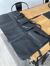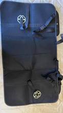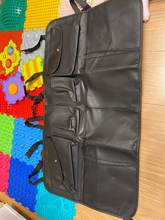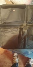 Он прибыл в Испанию примерно через две недели. Как видно на фото, ткань имитация кожи и выглядит довольно прочной и легко моется. Из-за заключения я не могу попробовать его в машине прямо сейчас, но он идеально подходит для сандалии, чуть шире, но не сильно, а карманы довольно широкие. Хороший продукт по хорошей цене, очень доволен полученным продуктом
