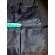 Tiene un soporte cómodo, con cintas y mosqueteros, así como con velcro. Se sujeta fuerte, se pueden colocar muchos objetos, hay bolsillos con botón magnético. Buen Producto y cómodo