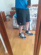 На рост 185см и вес 83 кг привычный размер XL оказался просто огромным. Есть два кармана по бокам, на талии дополнительно можно затянуть на шнурок. Цвет шорт не черный, скорее больше графитовый. По качеству нареканий нет - швы все ровные, торчащих ниток нет, материал приятный к телу. Замеры шорт в данном размере талия 46.5 см, бедра 59см, длина 50см.