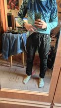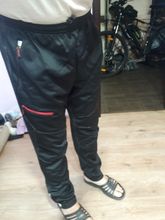 вторые мои штаны. первые летние. эти утеплённые, но очень интересно сделаны: утепленная ткань только в передней части штанов. задняя часть сделана из тонкой ткани для вентиляции. стоять в таких на холоде будет не очень комфортно, а ехать самое то, от набегающего потока холодного воздуха защищён. вторая теплая модель видимо полностью из теплой ткани. на 174 рост и 73 вес взял XL. сидят нормально, чуть свободно