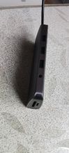 Todos los puertos funcionan. Usb-c con el extremo sólo para la fuente de alimentación. Ni una memoria USB ni un disco duro lo ve a través de él. El resto de las normas. Probablemente solo una desventaja, se calienta mucho en el trabajo.